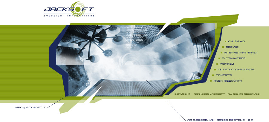 Chi siamo Servizi Internet-Intranet E-commerce Privacy Clienti/Consulenze Contatti Area Riservata info@jacksoft.it